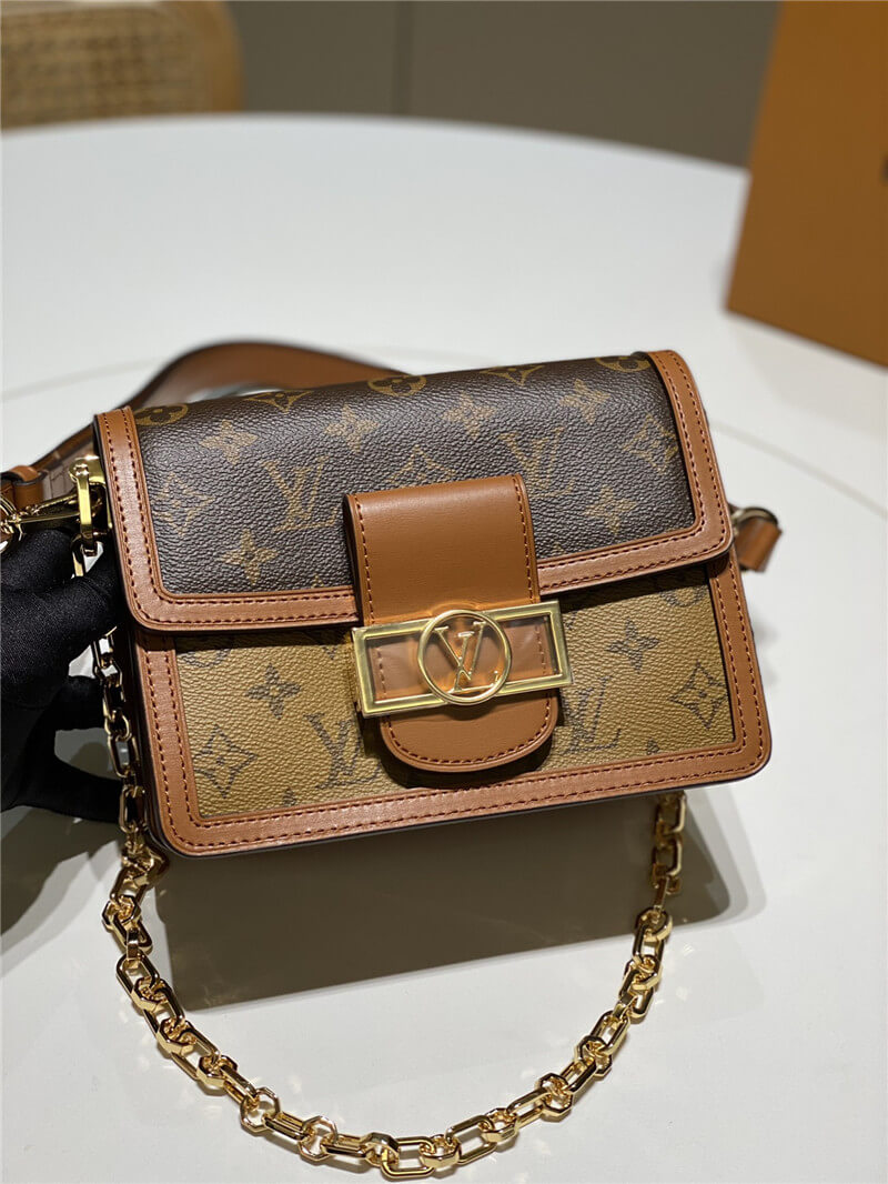 モノグラムキャンバスとモノグラムリバース キャンバスで上品にに仕立て、カーフ革でトリミングを施し、ドーフィーヌならではのマグネットスタイル留め具をあしらいました。