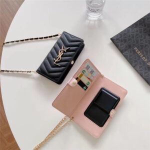 YSLスライド式全機種対応のスマートフォンケースです。アイコニックなキルティング設計、ゴールドカラーのYSLロゴ付き、華やかで大人可愛いイメージに。実用的なカードポケットが4つあるので、カードや名刺などを入れておくことができます。落下防止のチェーンデザインはファッションセンスたっぷり、オシャレな女性におすすめのバッグ風ケースです。